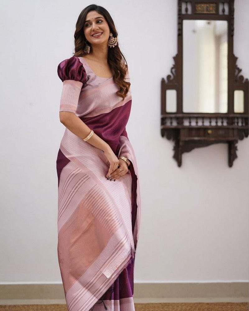 Baby Pink And Wine Color Soft Banarasi Silk Saree