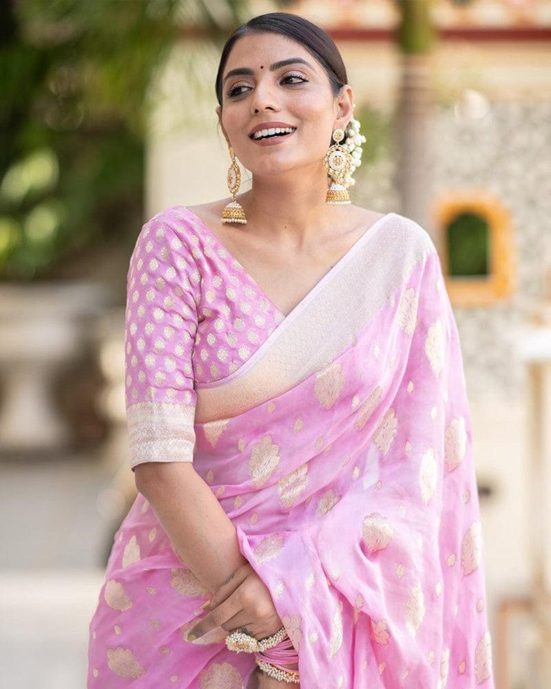 Baby Pink Color Banarasi All over Jacquard Soft Silk Saree