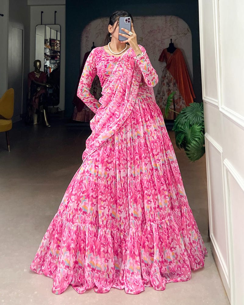 Baby Pink Color Georgette Printed Lehenga Choli