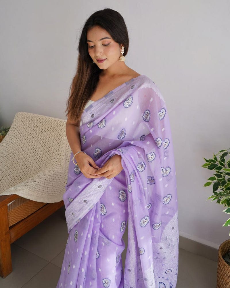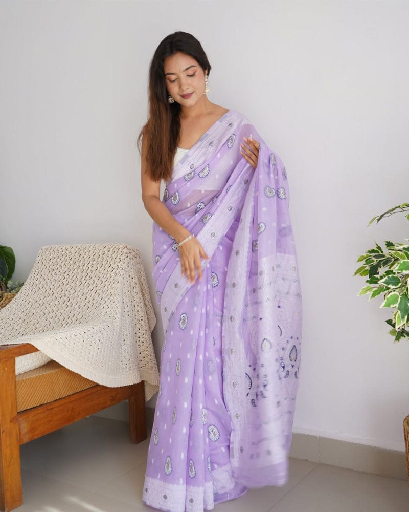 Beautiful Lavender Color Soft Cotton Saree
