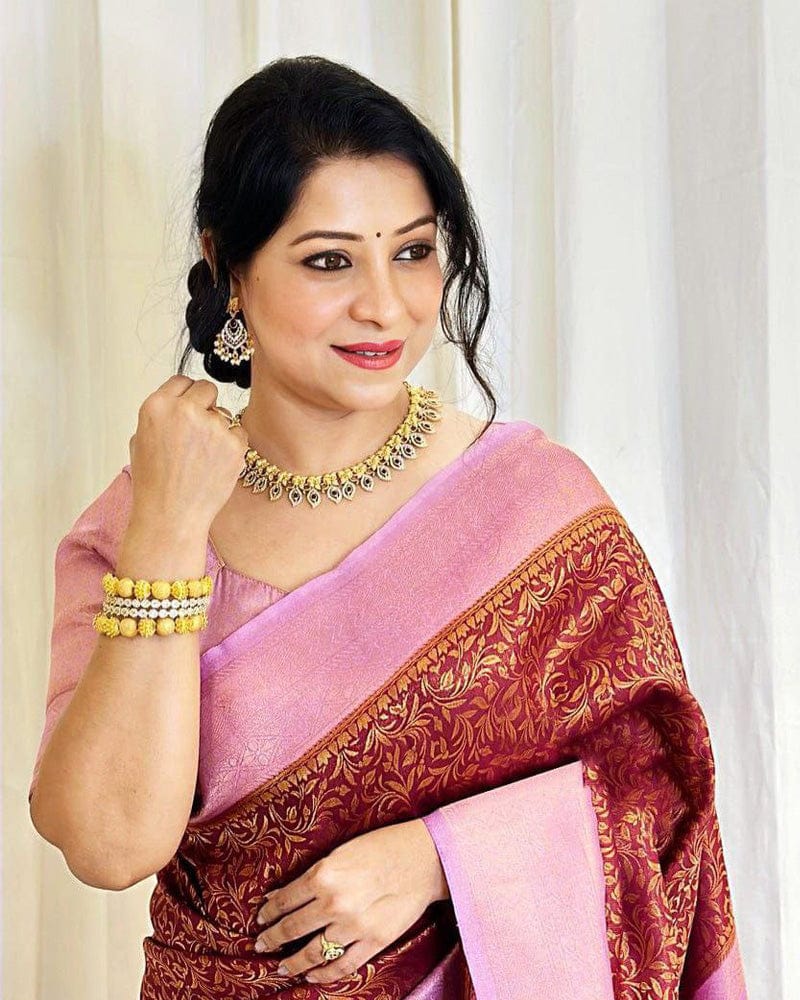 Beautiful Maroon Color Soft Lichi Silk Saree