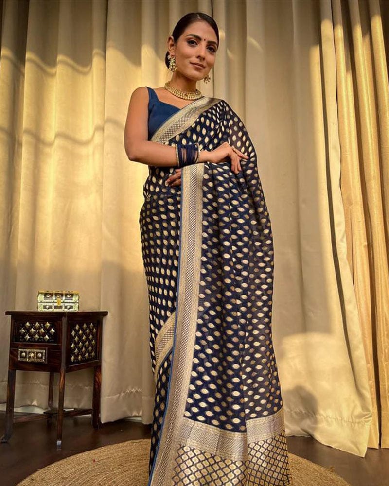 Beautiful Navy Blue Color Banarasi Jacquard Weaving Saree