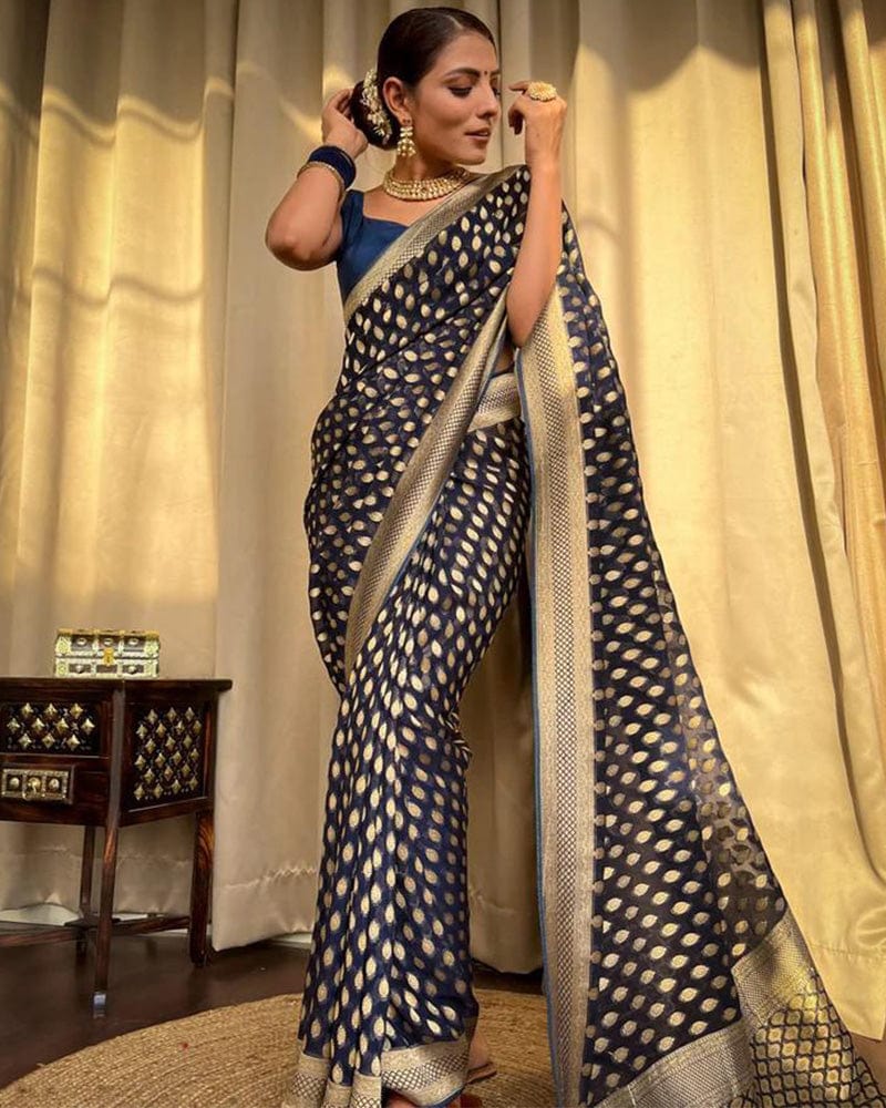 Beautiful Navy Blue Color Banarasi Jacquard Weaving Saree