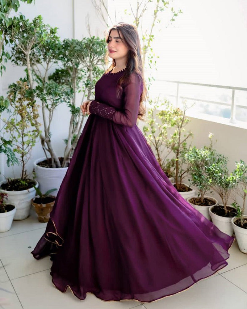 Beautiful Wine Color Anarkali Gown With Dupatta