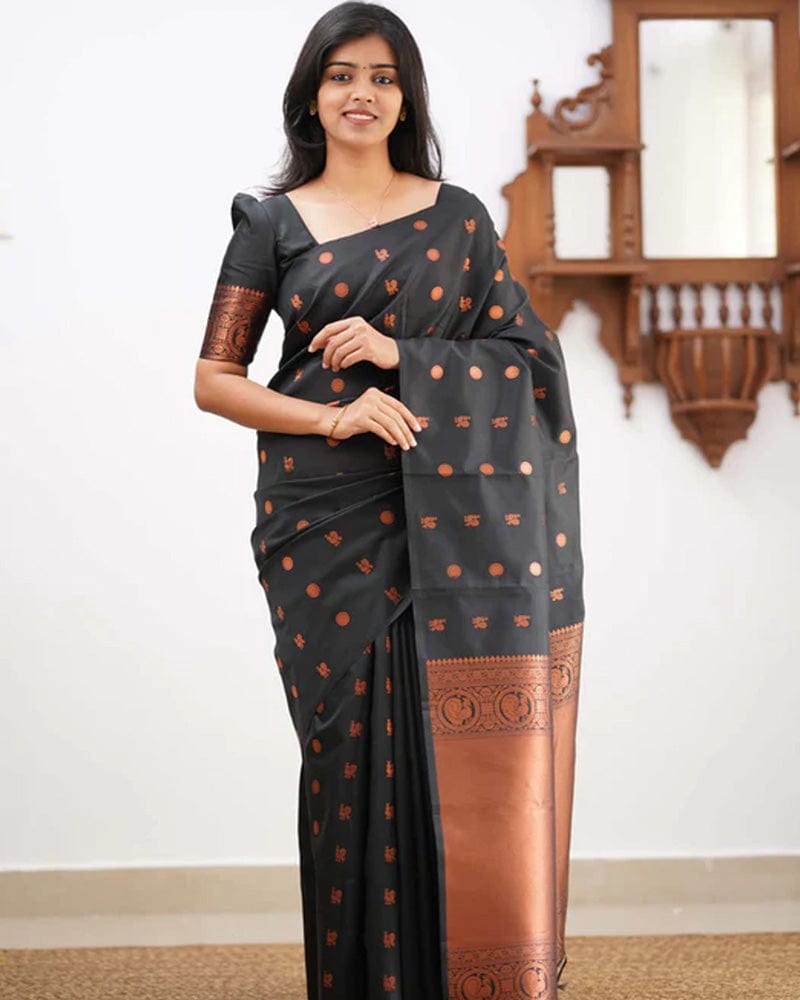 Black Color Banarasi Jacquard Soft Silk Saree
