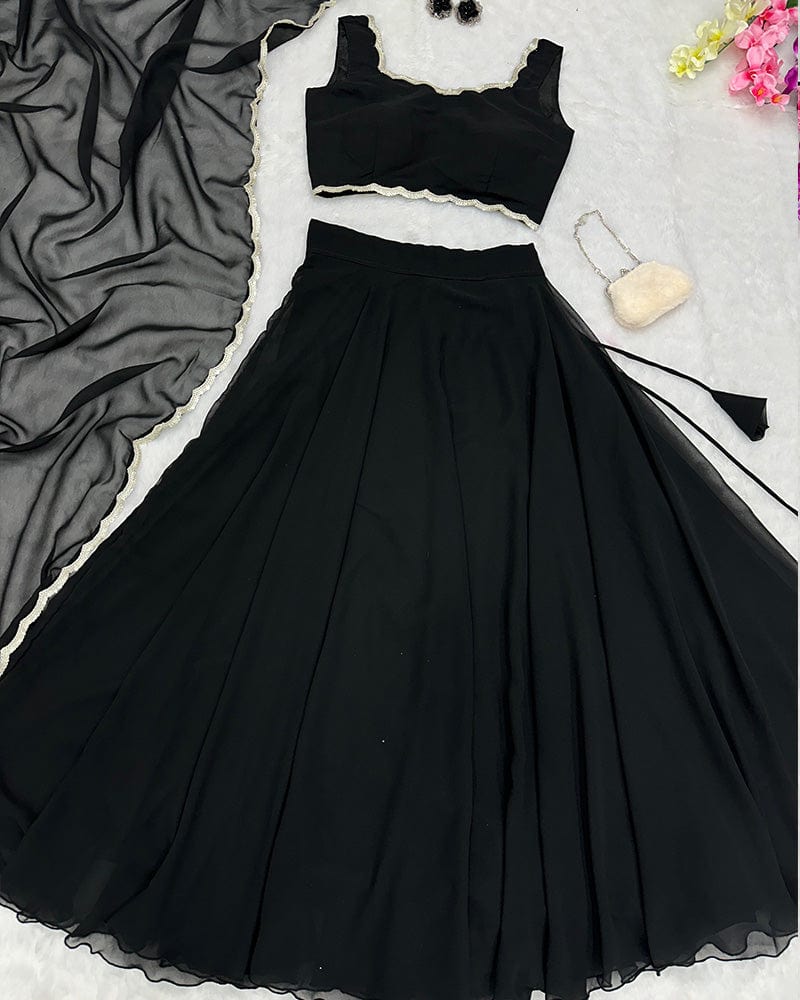 Black Color Full Flair Pure Georgette Full Stitched Lehenga Choli