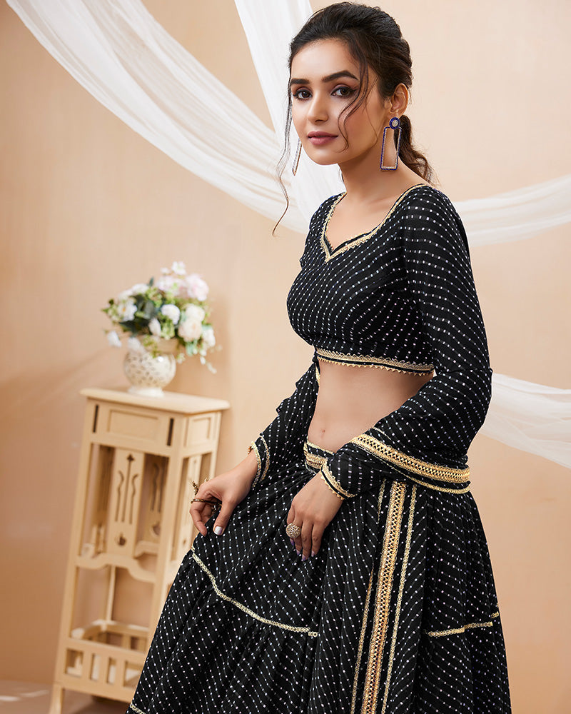 Black Color Georgette Leheriya Printed Lehenga Choli