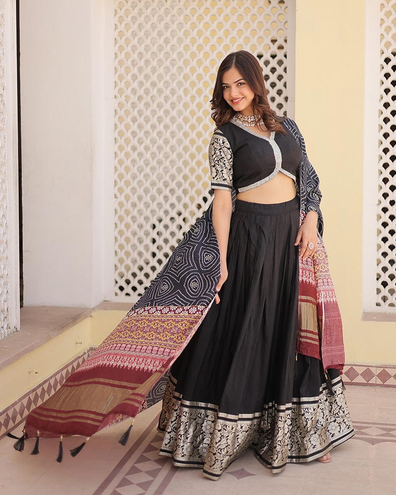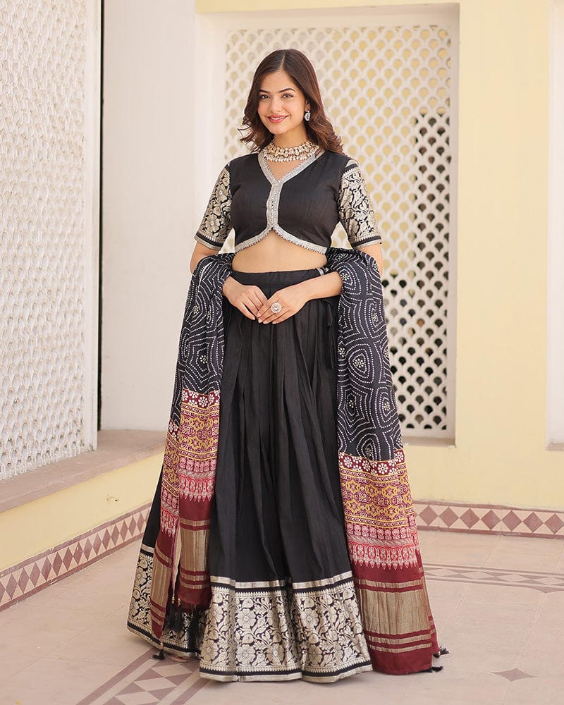 Black Color Jacquard Lehenga Choli With Gaji Silk Dupatta