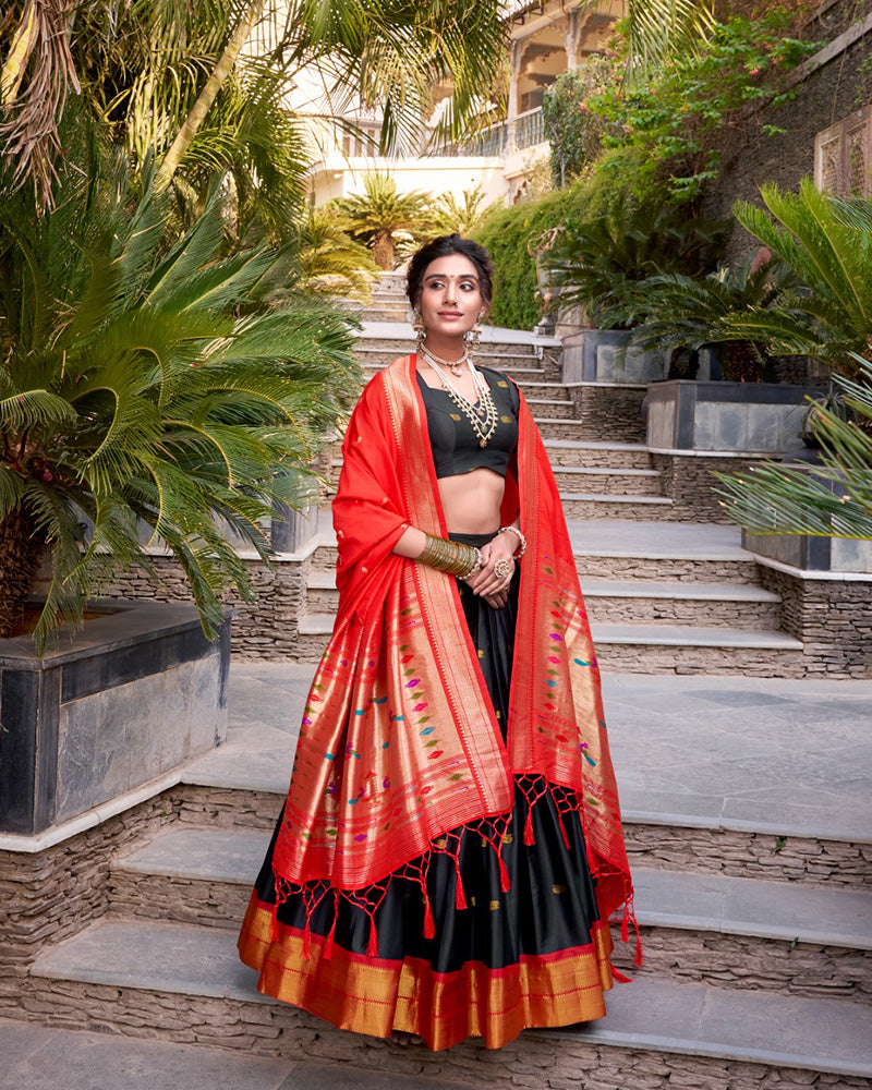 Black Color Jacquard Silk Zari Weaving Work Lehenga Choli