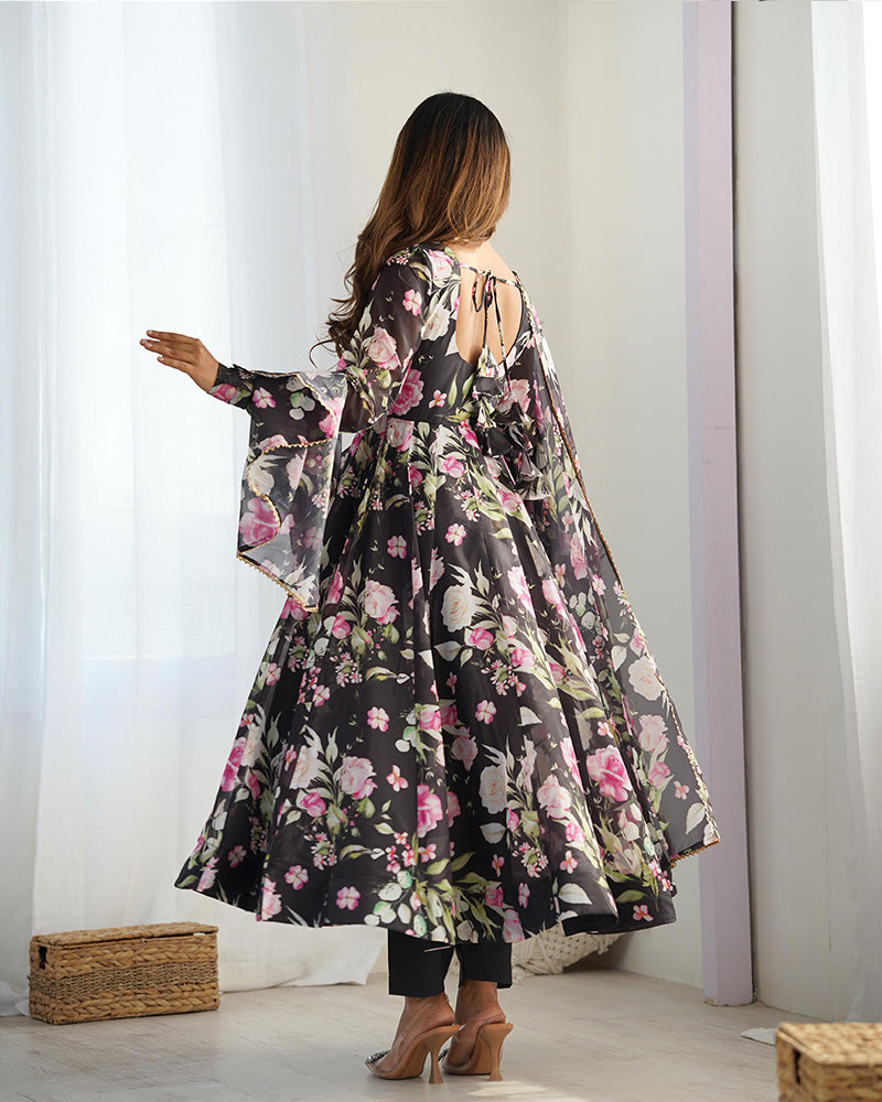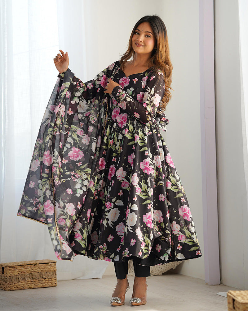 Black Color Pure Soft Organza Three Piece Anarkali Suit