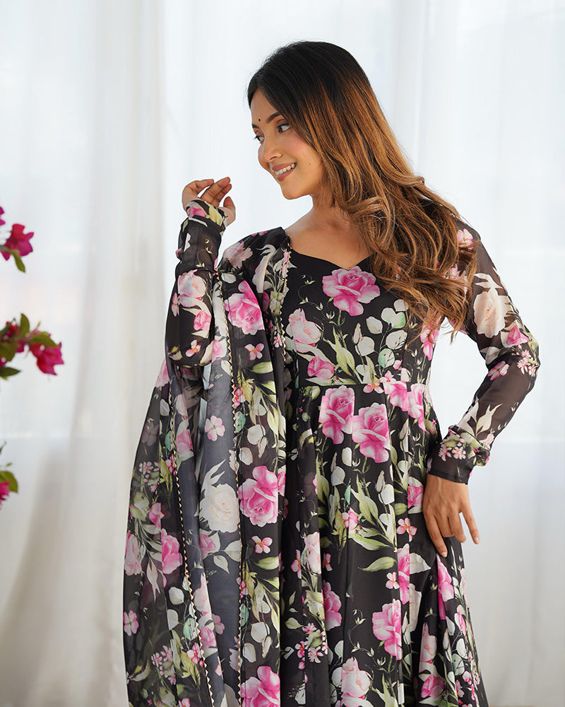 Black Color Pure Soft Organza Three Piece Anarkali Suit