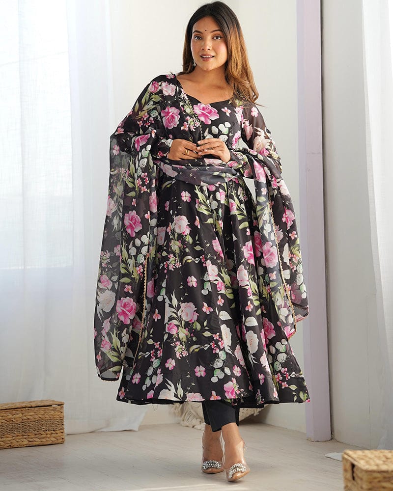 Black Color Pure Soft Organza Three Piece Anarkali Suit