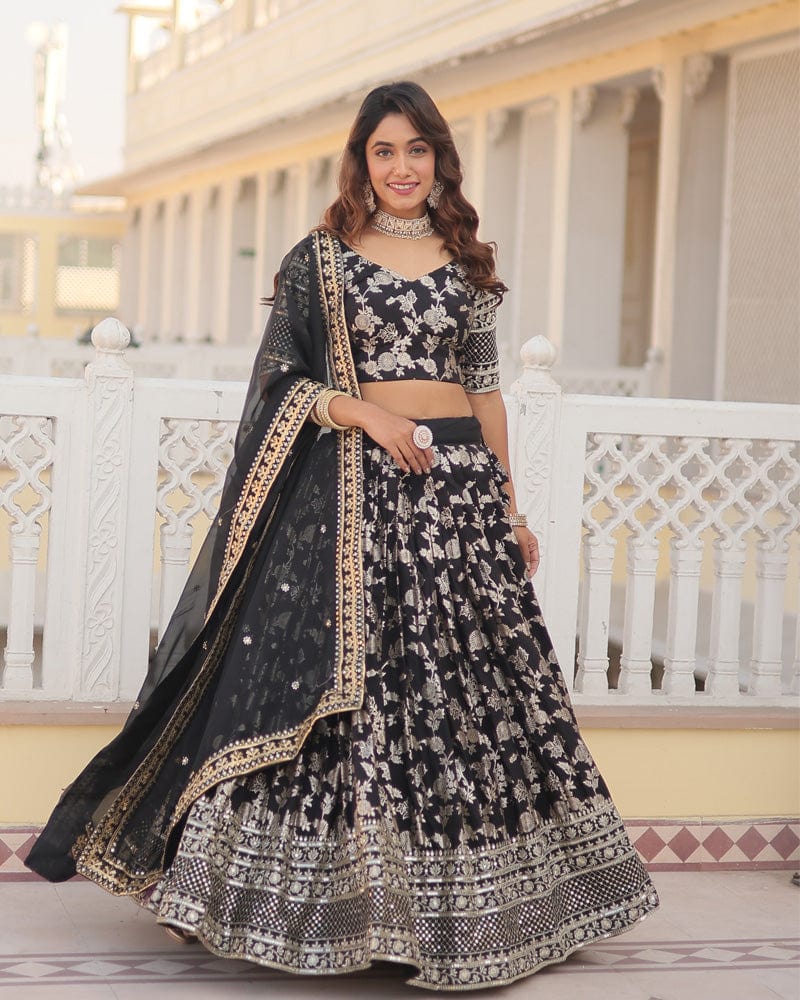 Black Color Pure Viscose Jacquard Lehenga Choli