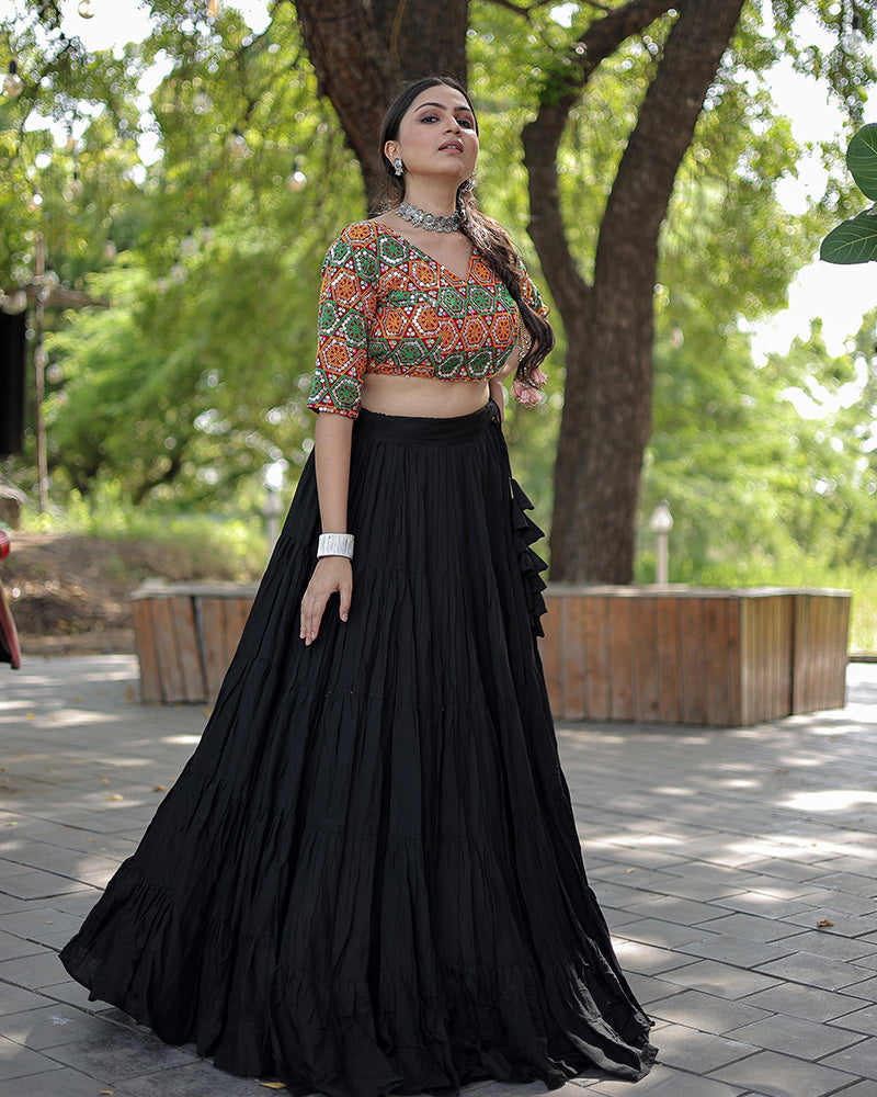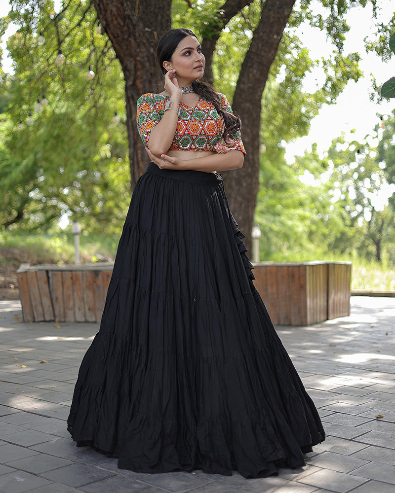 Black Color Rayon Full Flair Navratri Lehenga Choli