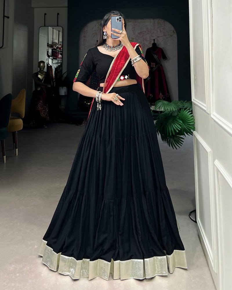 Black Color Rayon Ruffle Style Navratri Lehenga Choli