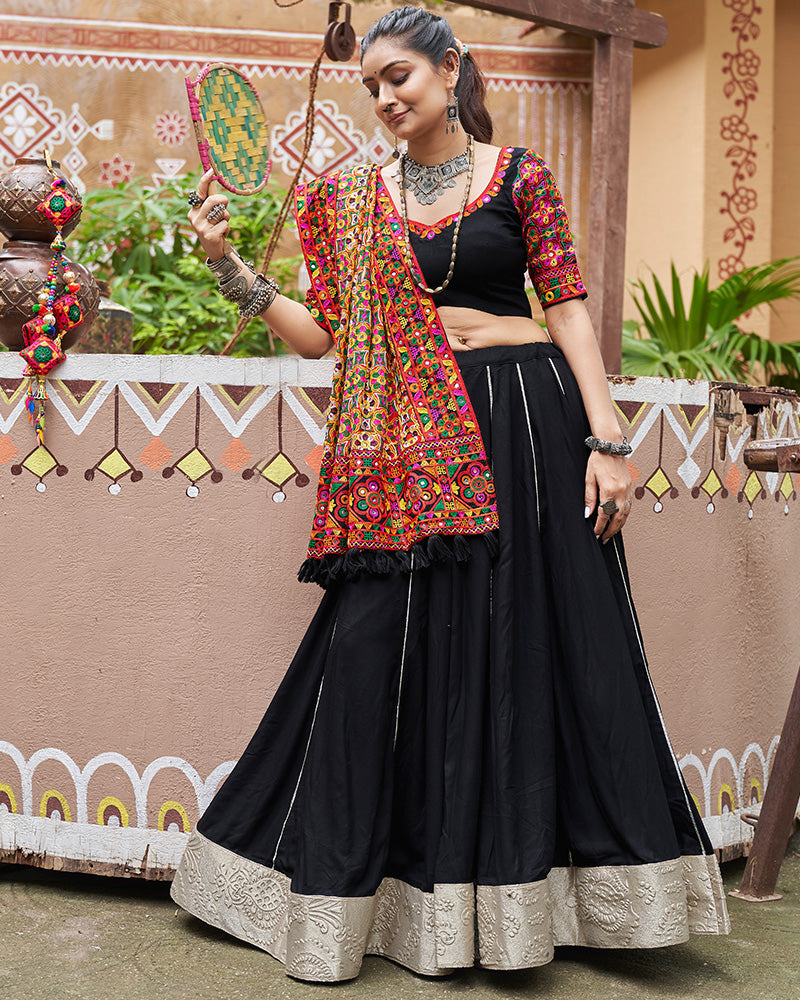 Black Color Viscose Rayon Navratri Lehenga Choli