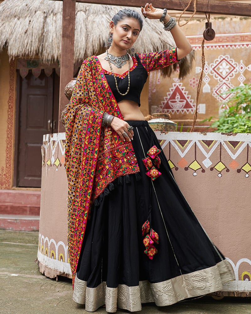 Black Color Viscose Rayon Navratri Lehenga Choli