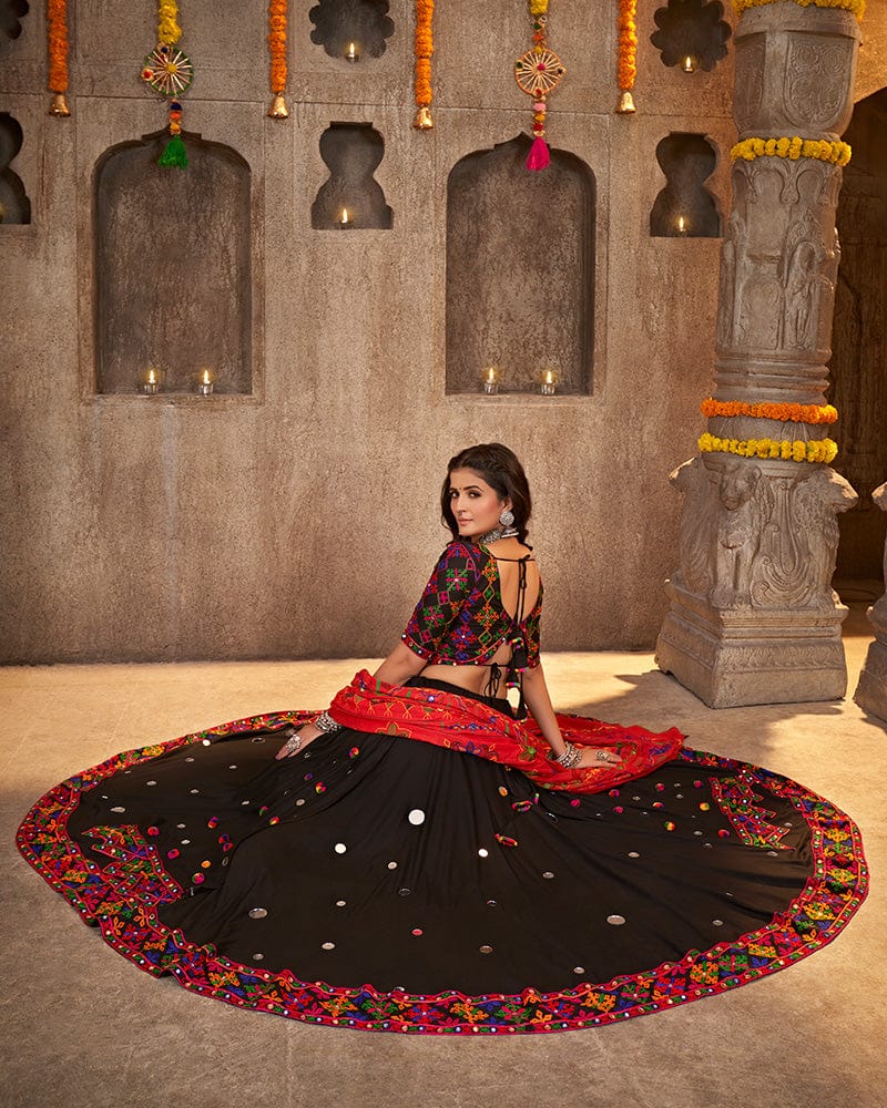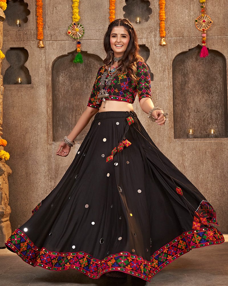 Black Color Viscose Rayon Thread With Mirror Work Navratri Lehenga Choli