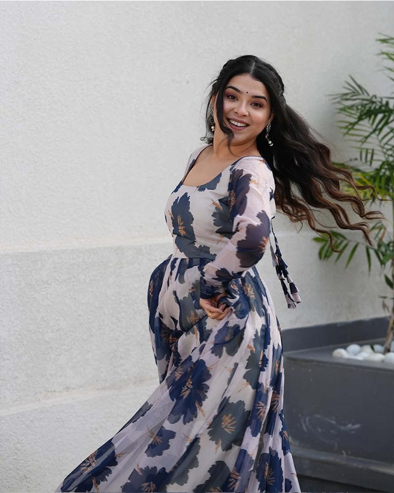 Embrace graceful charm with this Blue Color Flower Print Tabby Organza Anarkali Suit. Featuring delicate floral prints on lightweight tabby organza, it offers a flowy and elegant silhouette—perfect for festive gatherings and daytime events.