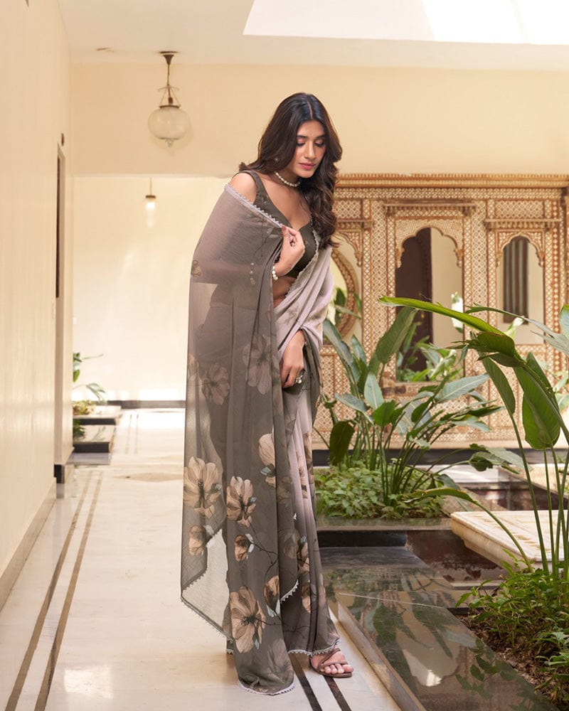 Showcase effortless elegance with this Chikoo Color Weightless Marble Saree with Unstitched Blouse. Made from soft, lightweight fabric with a stylish marble pattern, it's ideal for everyday wear, casual gatherings, and festive occasions.