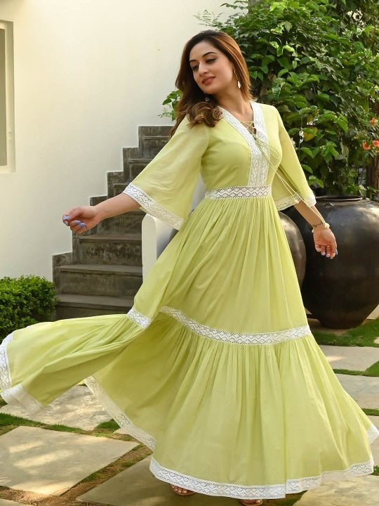 Cotton Lace Insert Tiered Ethnic Dresses