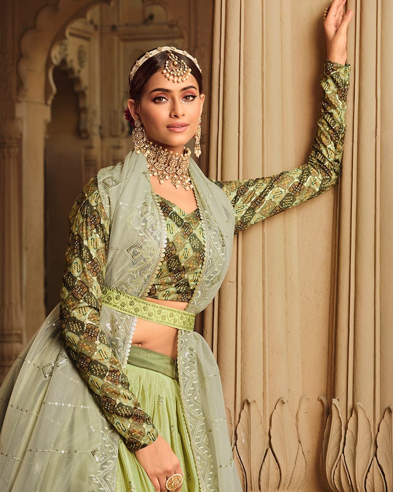 Designer Pista to Mehndi Color Silk Embroidered Lehenga Choli