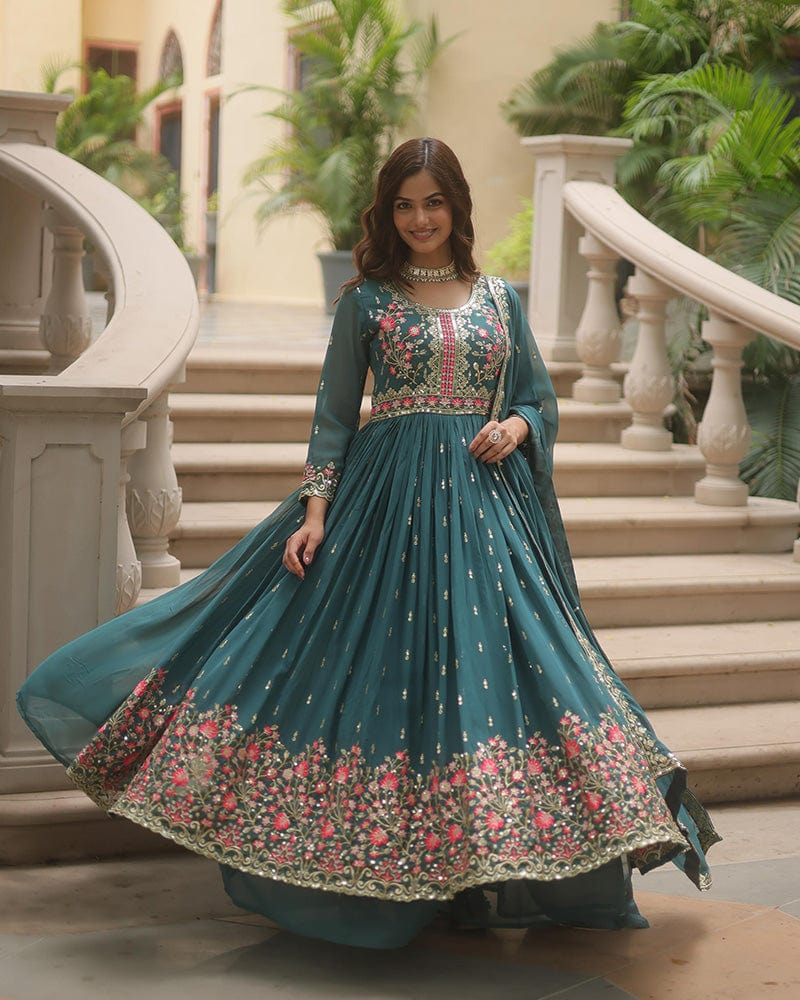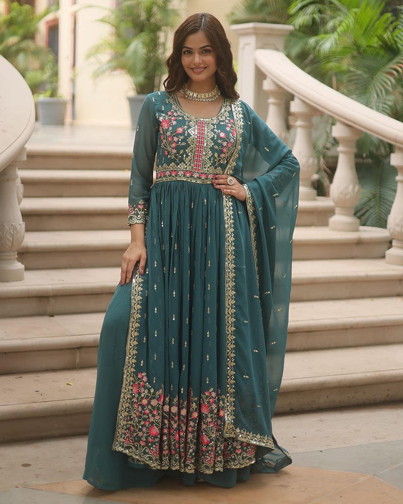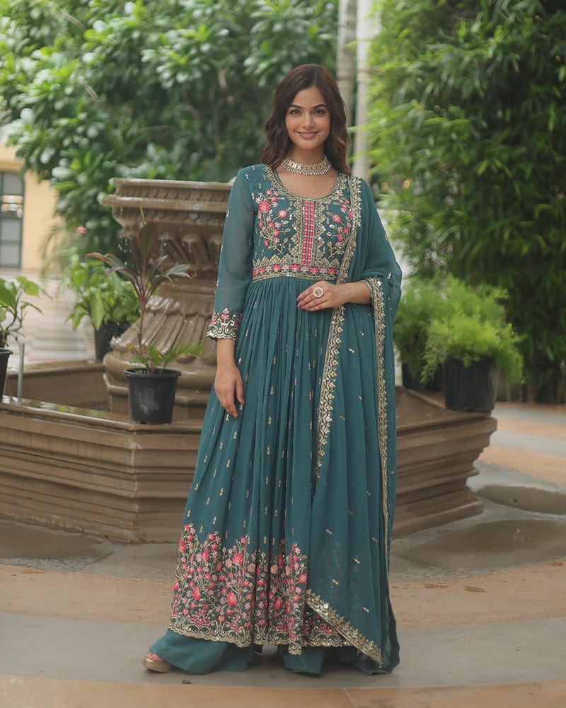 Dupatta Work: 2.3 Meter With Faux Georgette Rich Sequins Embroidered Work