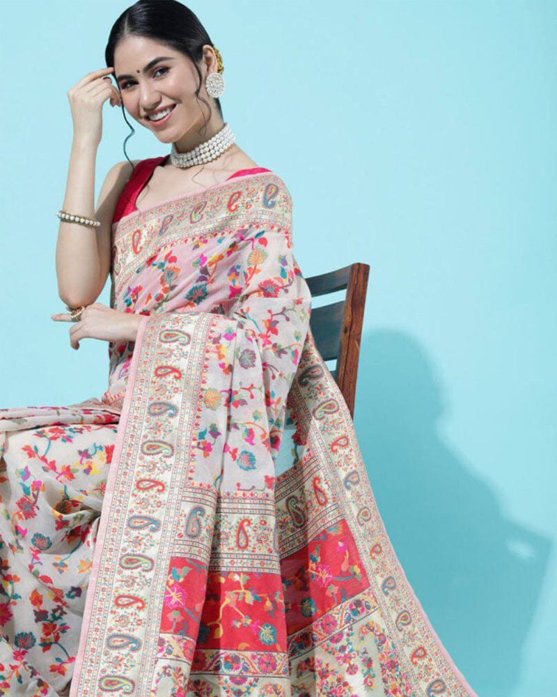 Drape yourself in ethereal charm with this Designer White Banarasi Soft Silk Saree, a captivating ensemble that seamlessly fuses traditional opulence with contemporary allure. Crafted from luxurious soft silk, the saree drapes gracefully, creating a regal and enchanting silhouette. The pristine white hue exudes timeless elegance, making it an ideal choice for various occasions. Adorned with intricate Banarasi detailing and designer work, the saree stands as a testament to meticulous craftsmanship. Paired with an unstitched blouse piece, this ensemble allows you to customize your look, promising to be a showstopper at any grand event. Elevate your style with this Designer White Banarasi Soft Silk Saree, a celebration of refined opulence and timeless design.