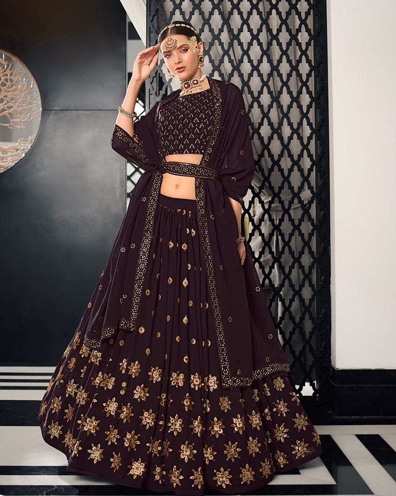 Designer wine Color Georgette Semi Stitched Lehenga Choli