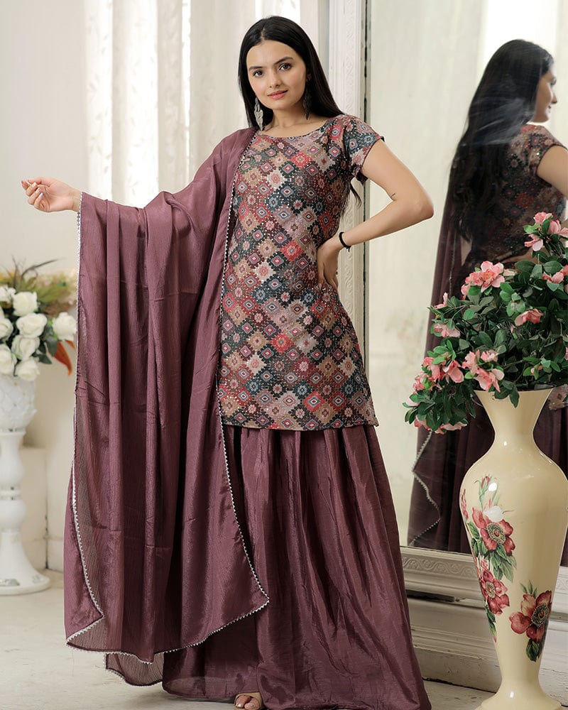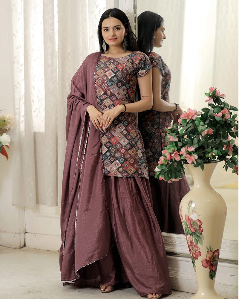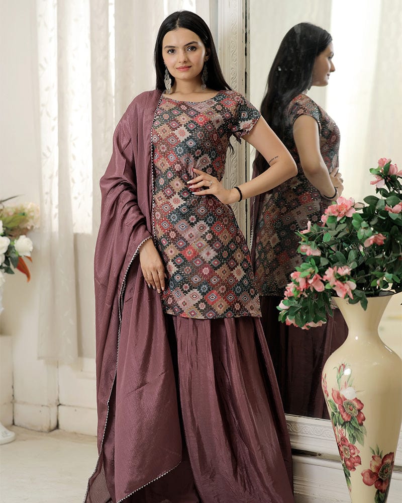 Dusty Pink Color Three Piece Designer Plazzo Suit