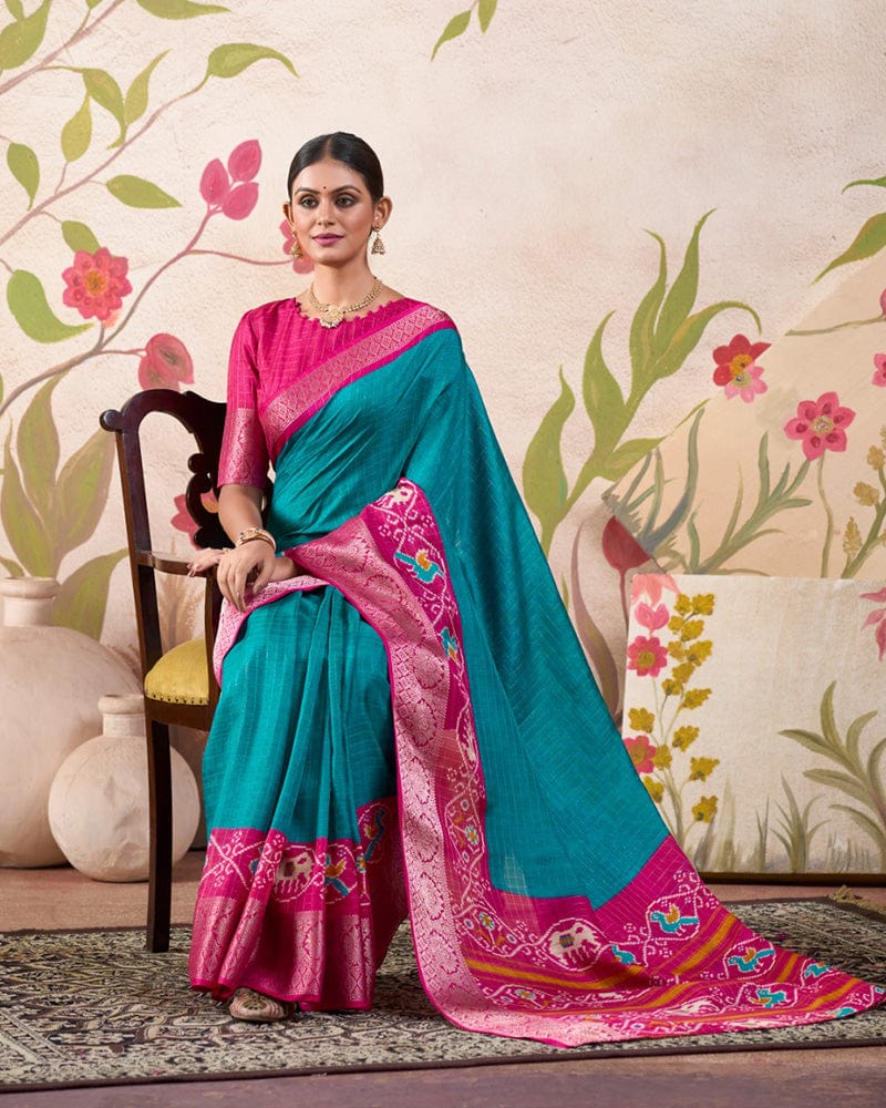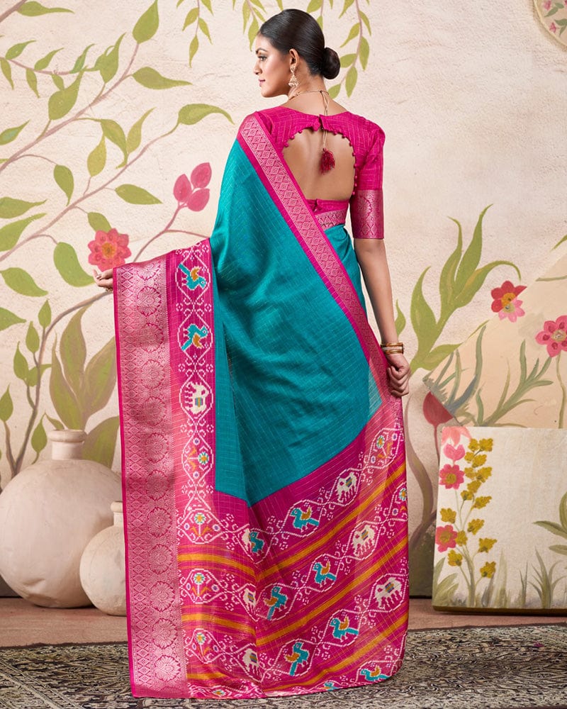 Brighten your wardrobe with this vibrant firozi color tussar chex saree. Made from exquisite tussar silk, it showcases a stylish check pattern that combines tradition and modernity. The saree comes with an unstitch blouse for a customized fit, making it perfect for festive occasions or elegant gatherings. Elevate your look with this eye-catching piece!