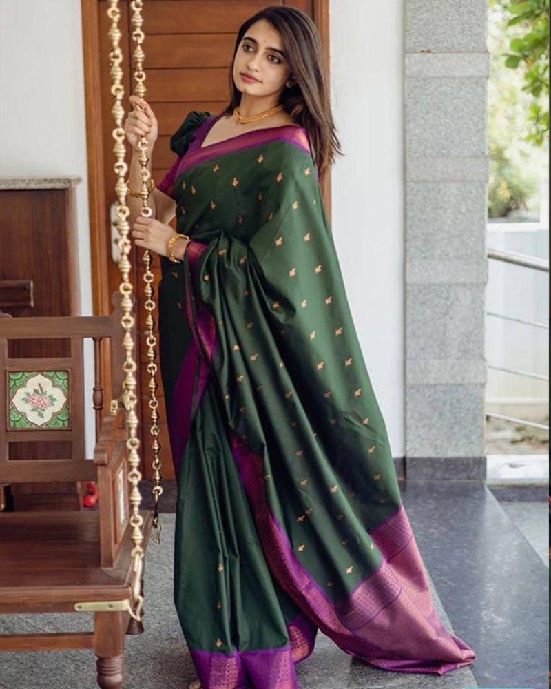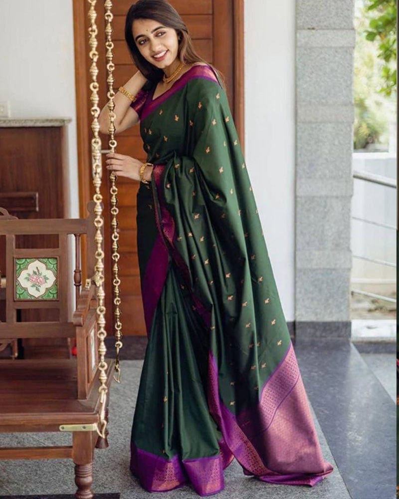 Green Color Banarasi Soft Silk Saree