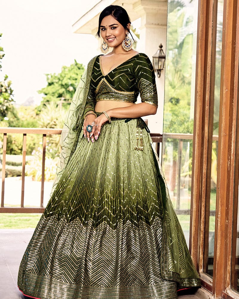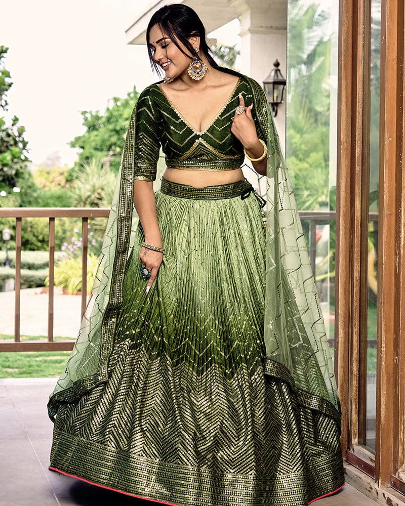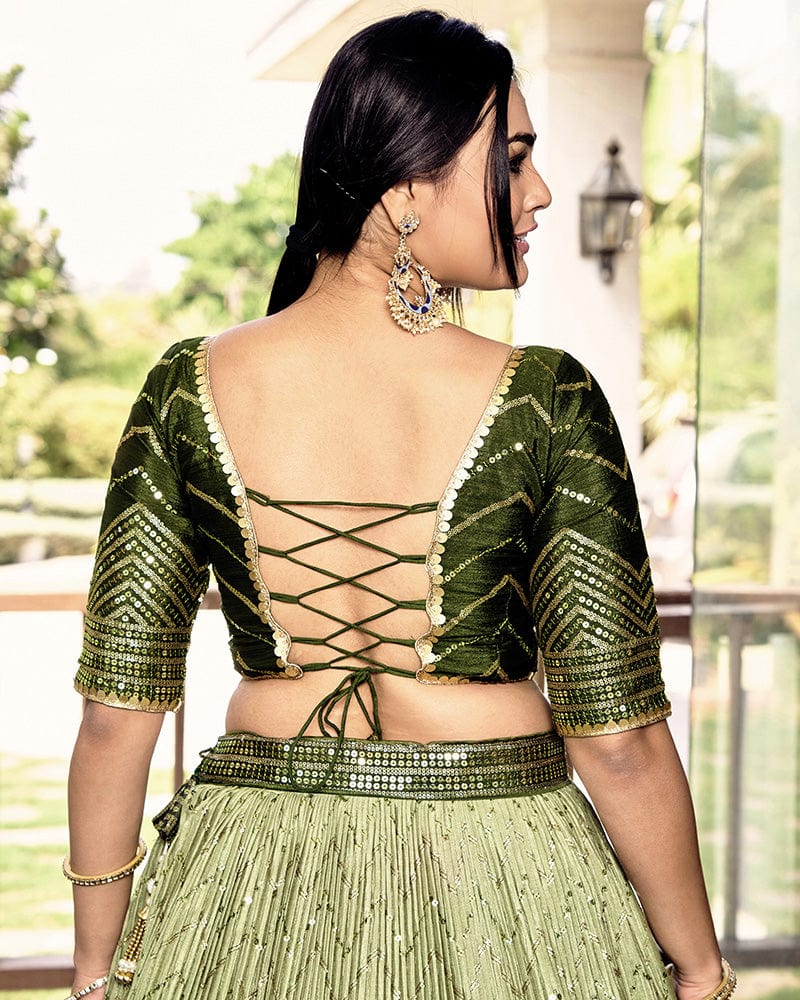 Green Color Chinon Embroidered Lehenga Choli