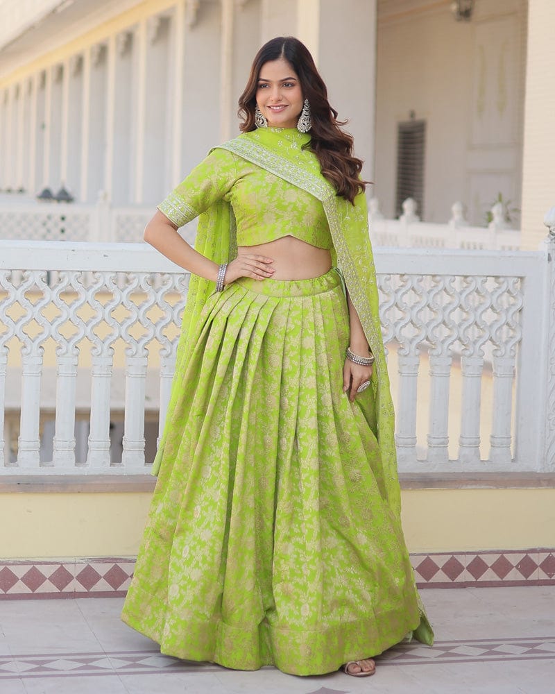 Green Color Pure Viscose Jacquard Lehenga Choli