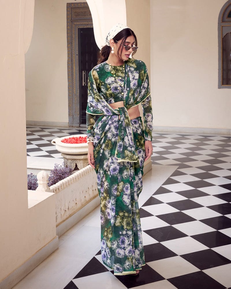 This green color weightless marble printed saree offers a modern, elegant look with its soft drape and stylish print. Paired with an unstitched blouse, it's ideal for casual wear, festive occasions, and effortless everyday charm.