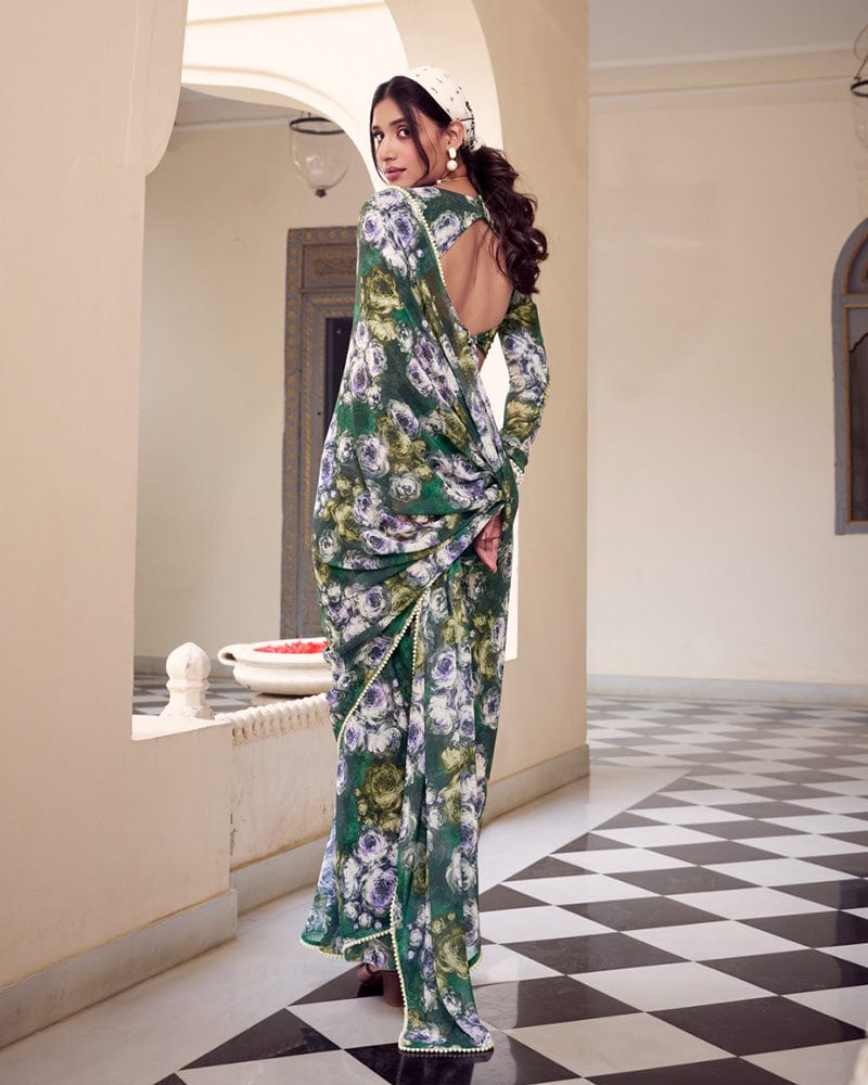 Green Color Weightless Marble Printed Saree