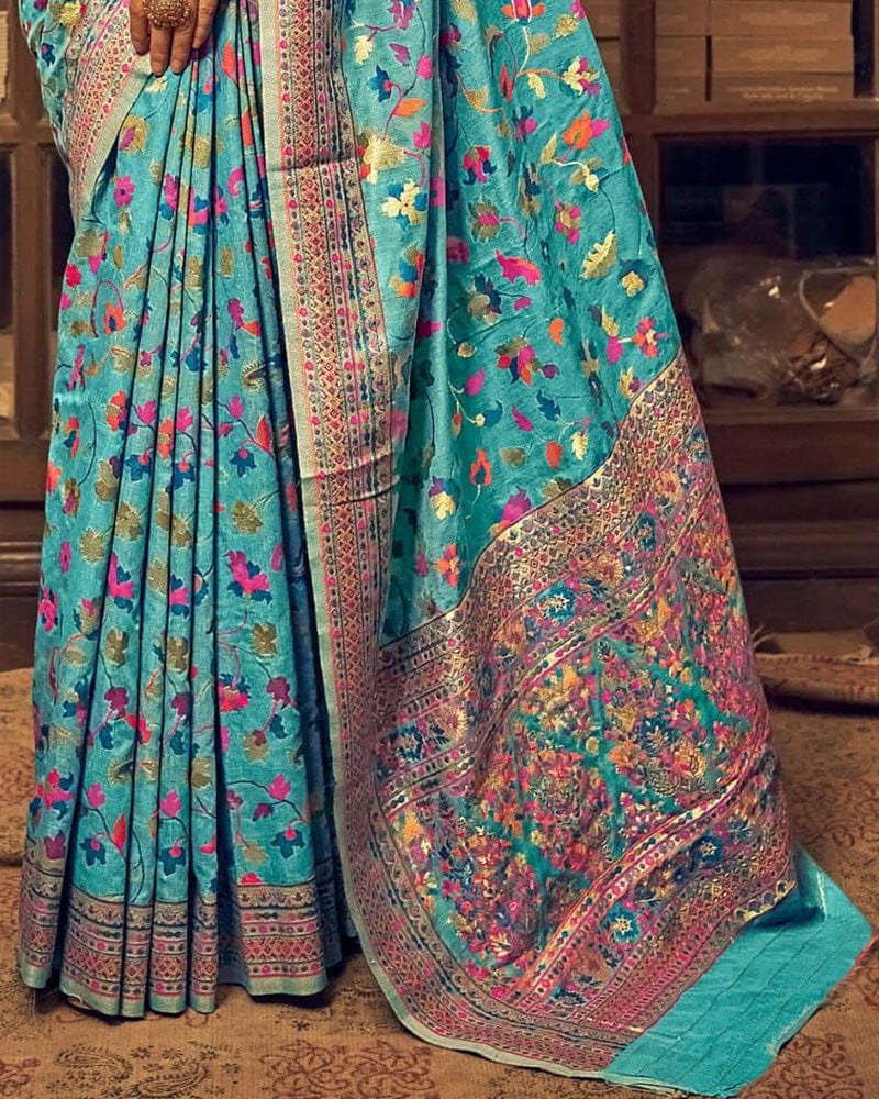 Heavy designer Sky Blue Colour Banarsi Soft Silk Saree