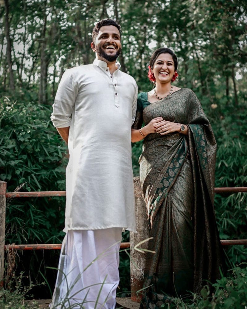 Embrace opulence with our Heavy Designing Green Jacquard Print Soft Silk Saree—a masterpiece that seamlessly blends tradition with contemporary grandeur. The rich green hue, coupled with intricate jacquard prints, creates a visual symphony of sophistication. The soft silk fabric drapes luxuriously, enhancing the overall regal appeal. This saree features heavy and intricate designs, adding a touch of glamour to its traditional roots. Accompanied by an unstitched blouse piece, it offers the flexibility to tailor your look to perfection. Perfect for grand celebrations and special occasions, this saree is a testament to impeccable craftsmanship and modern design, ensuring you make a statement that resonates with both heritage and style.