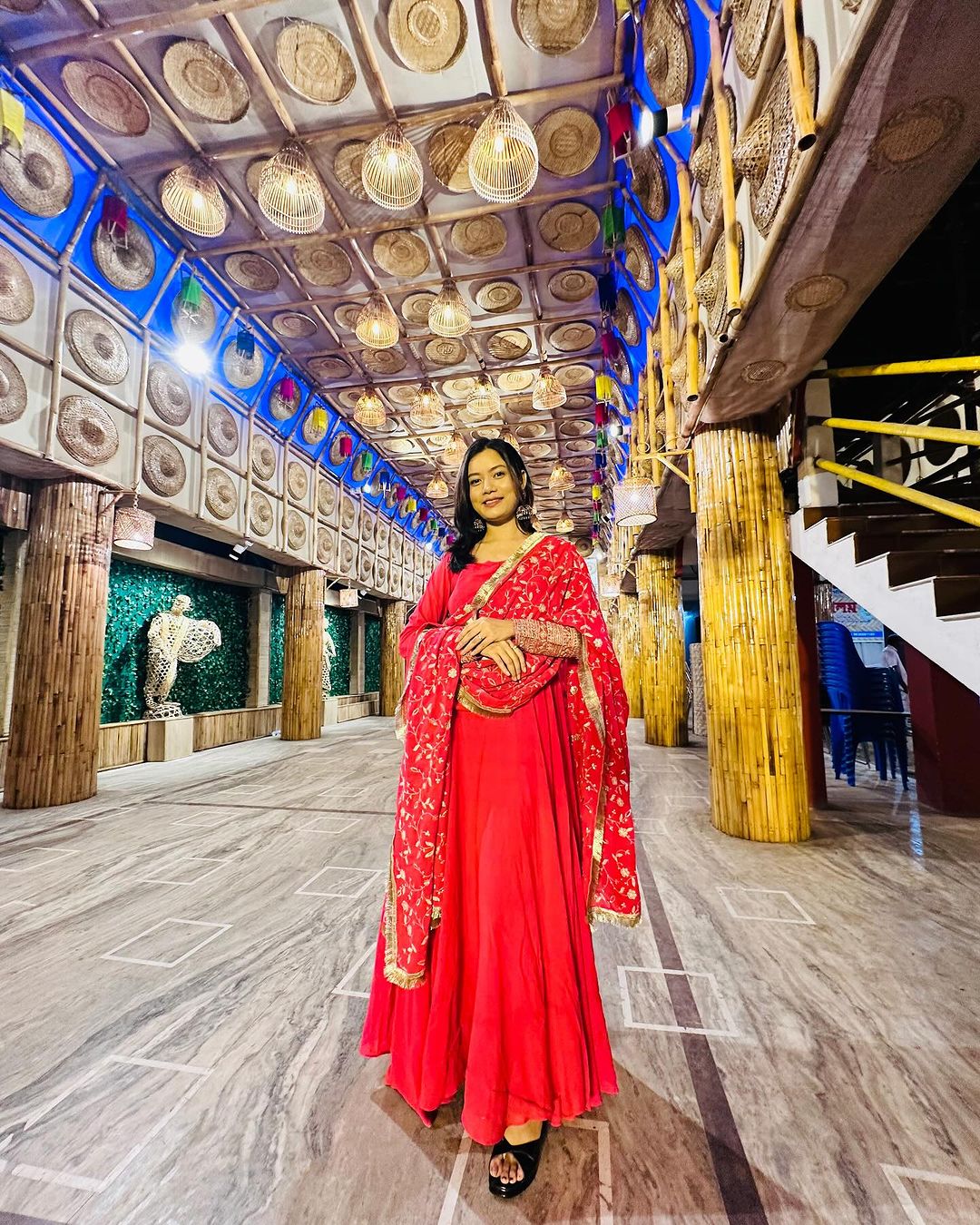 Beautiful @jelina__d ❤️, adorned in an exquisite ensemble that combines elegance and style. She wears a stunning three-piece suit, featuring a pure soft georgette Rani with intricate heavy embroidery work. The ensemble is completed with a beautifully crafted dupatta, enhancing the overall charm of the outfit. 🫰🏻❤️