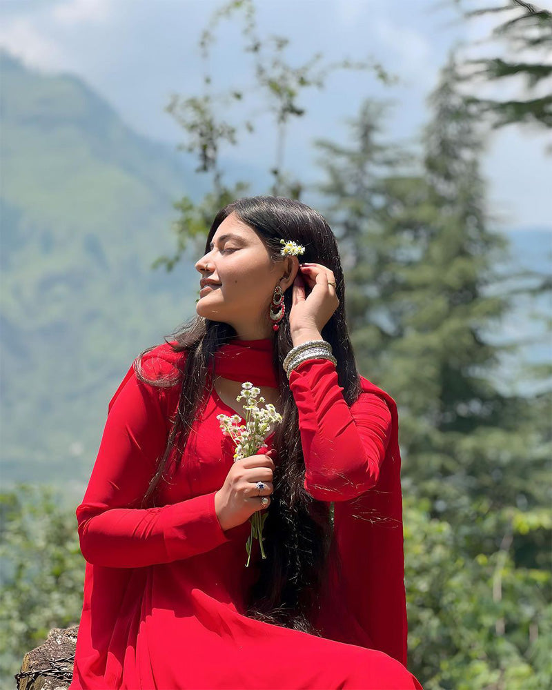 Jyoti Thakur Designer Back String Style Red Colour Three Piece Anarkali Suit