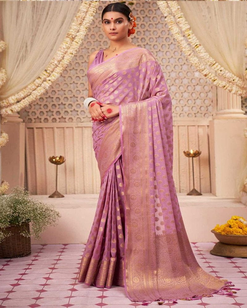 Lavender Color Banarasi Jacquard Soft Silk Saree