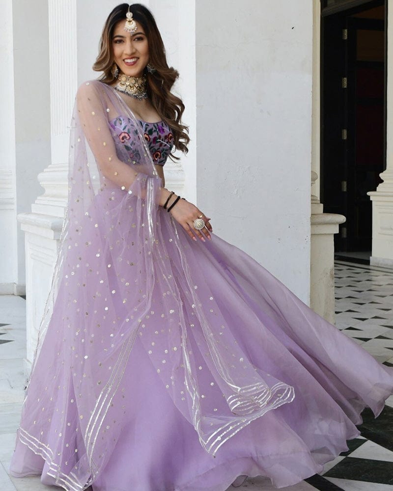 Lavender Color Organza Net Resham Embroidered Lehenga Choli