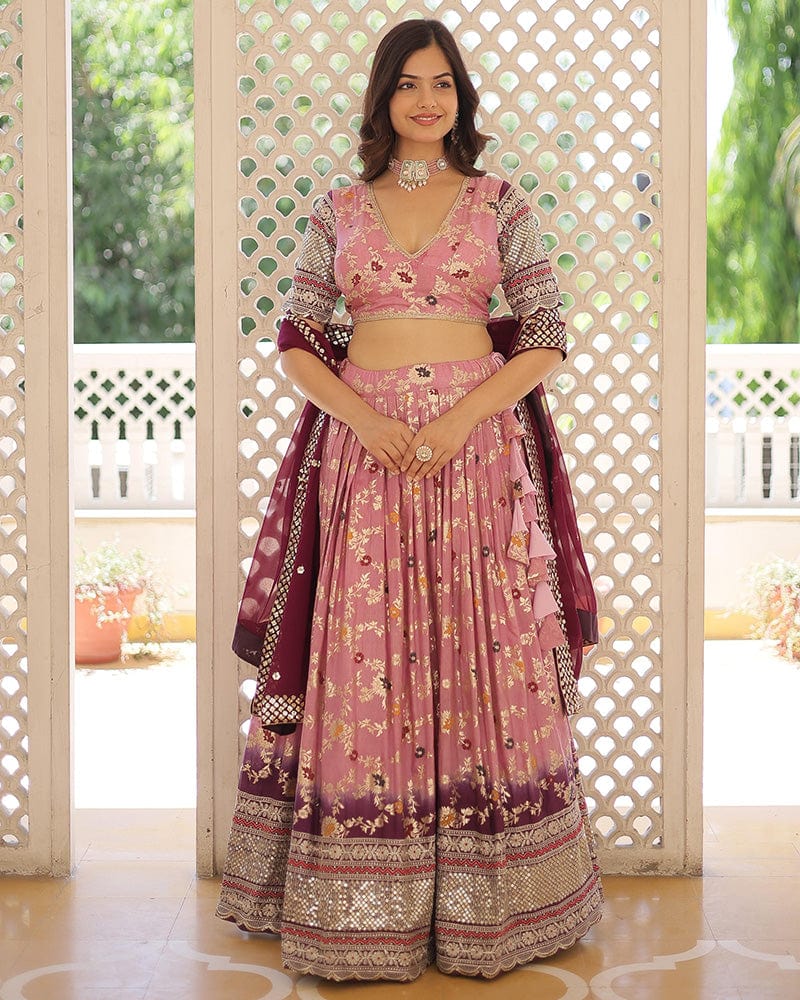 Lavender Color Pure Viscose Jacquard Lehenga Choli