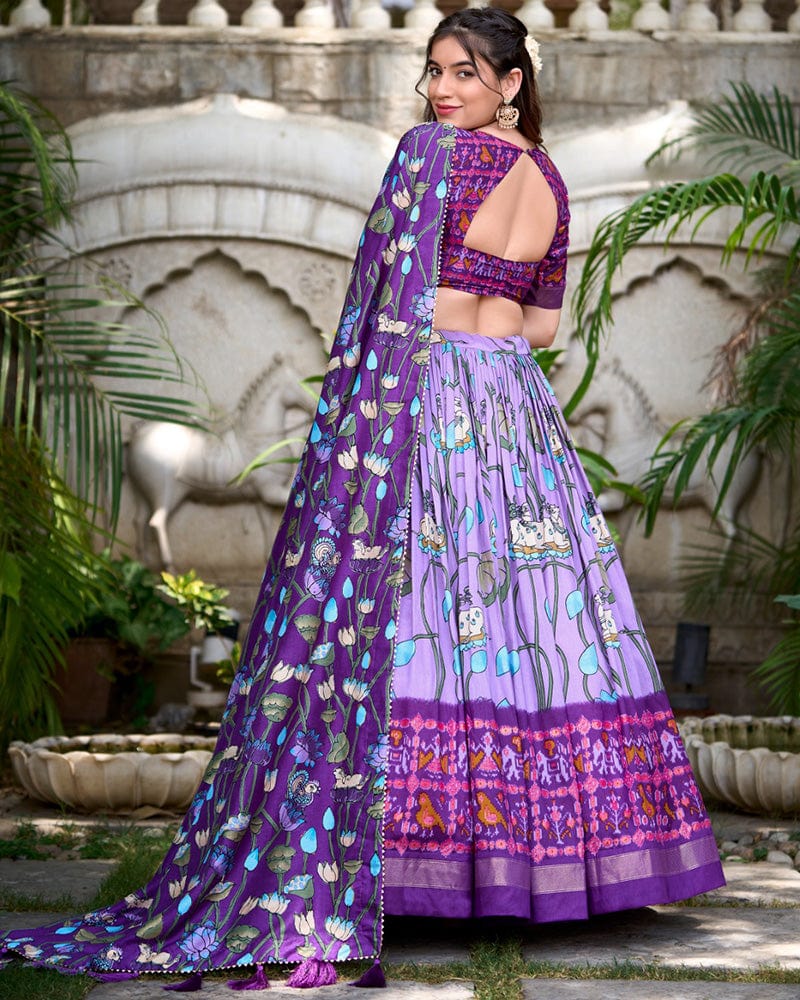 Lavender Color Tussar Silk Patola Printed Lehenga Choli