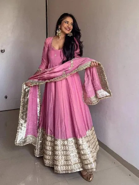 Light Pink Color Gown in Chinon Silk With Sequence Embroidery and Dupatta