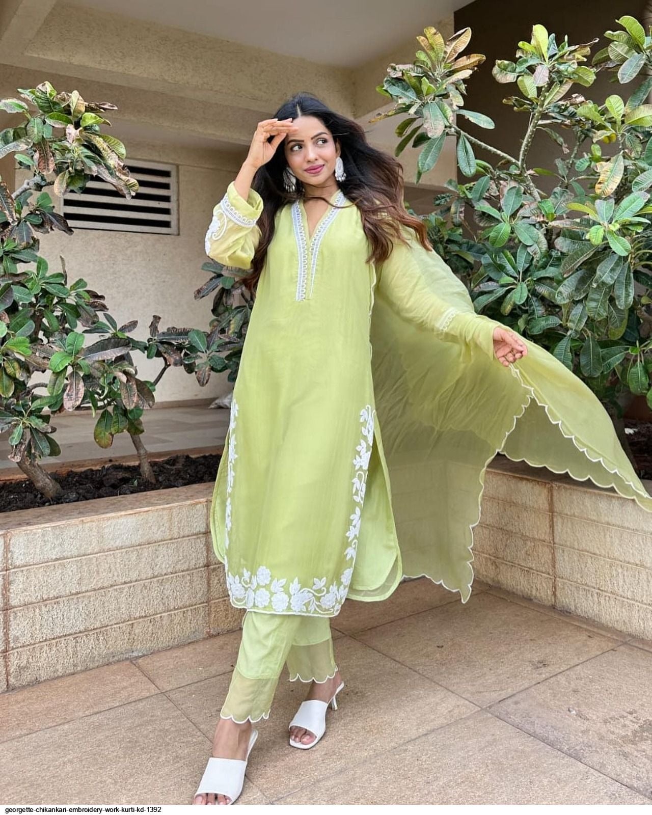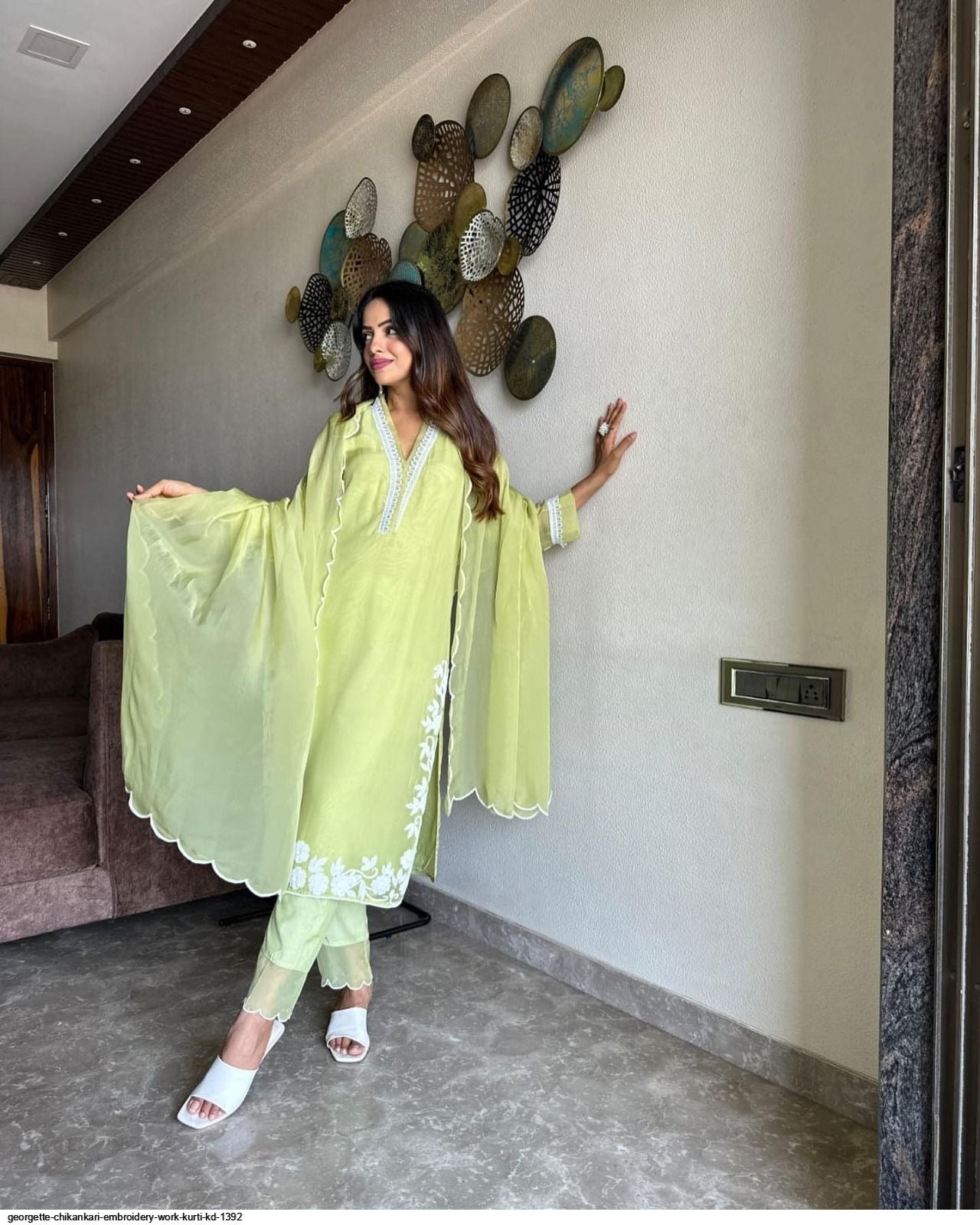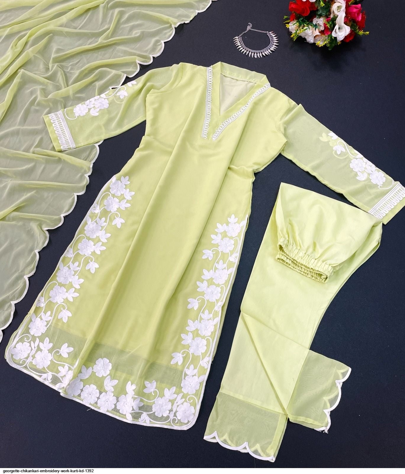 Luxurious Chikankari Embroidered Faux Georgette Top & Pant with dupatta Set
