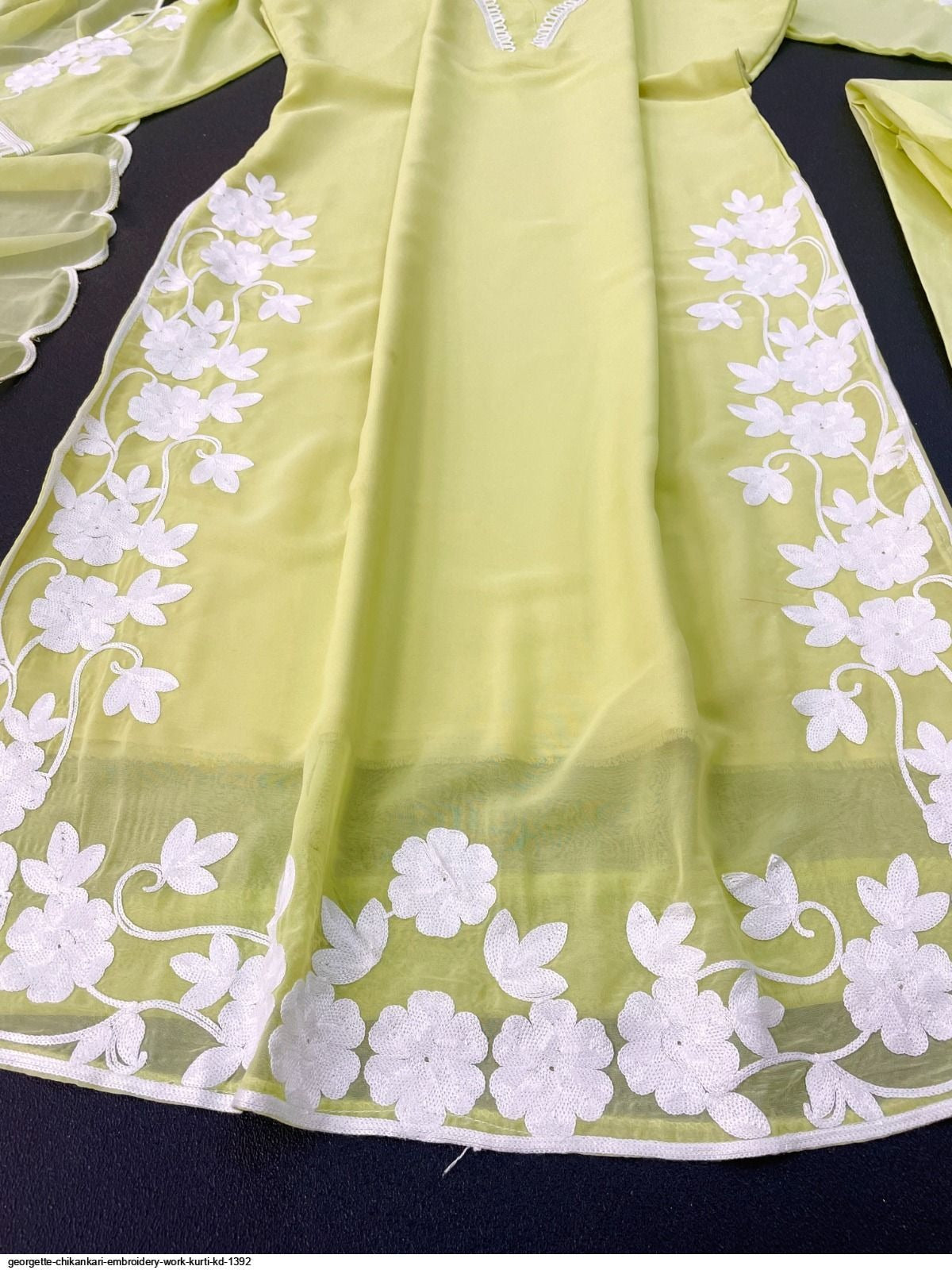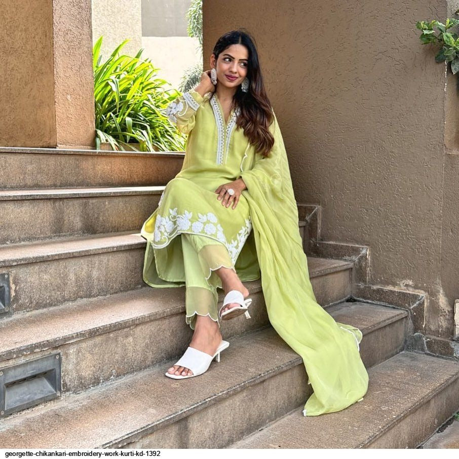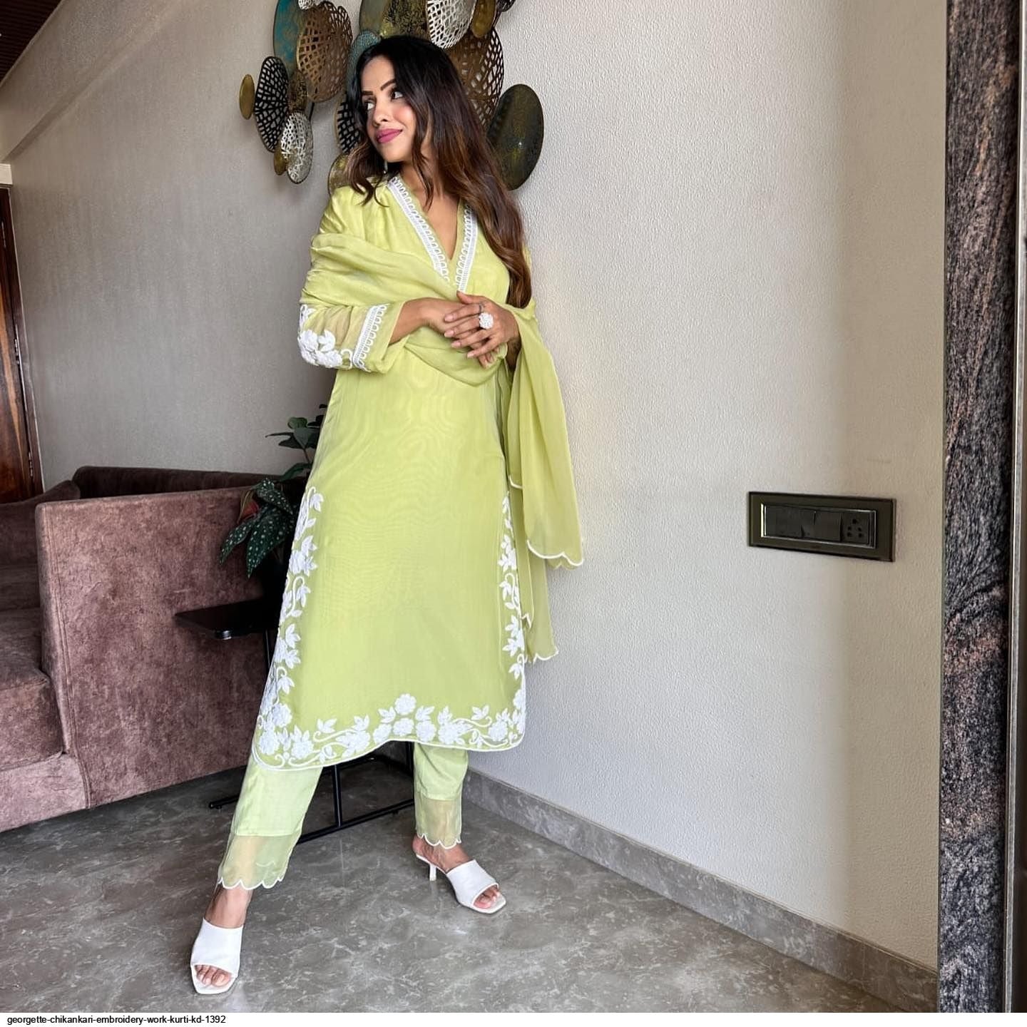 Luxurious Chikankari Embroidered Faux Georgette Top & Pant with dupatta Set