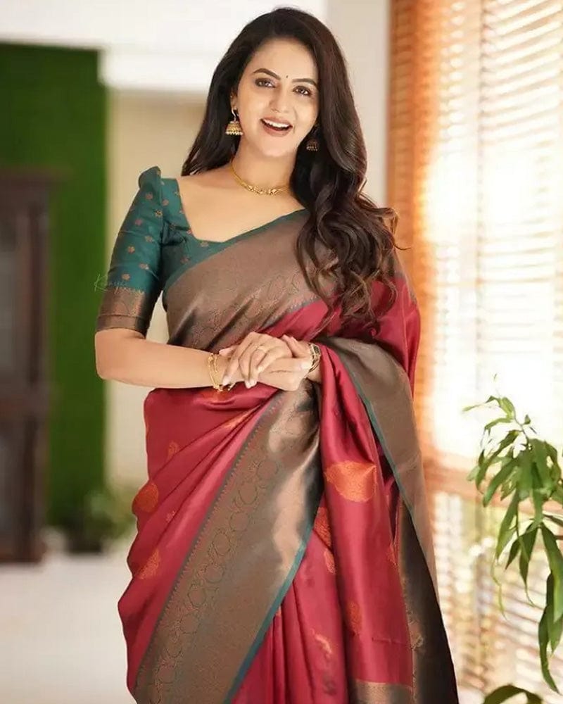 Maroon Color Banarasi Jacquard Soft Silk Saree