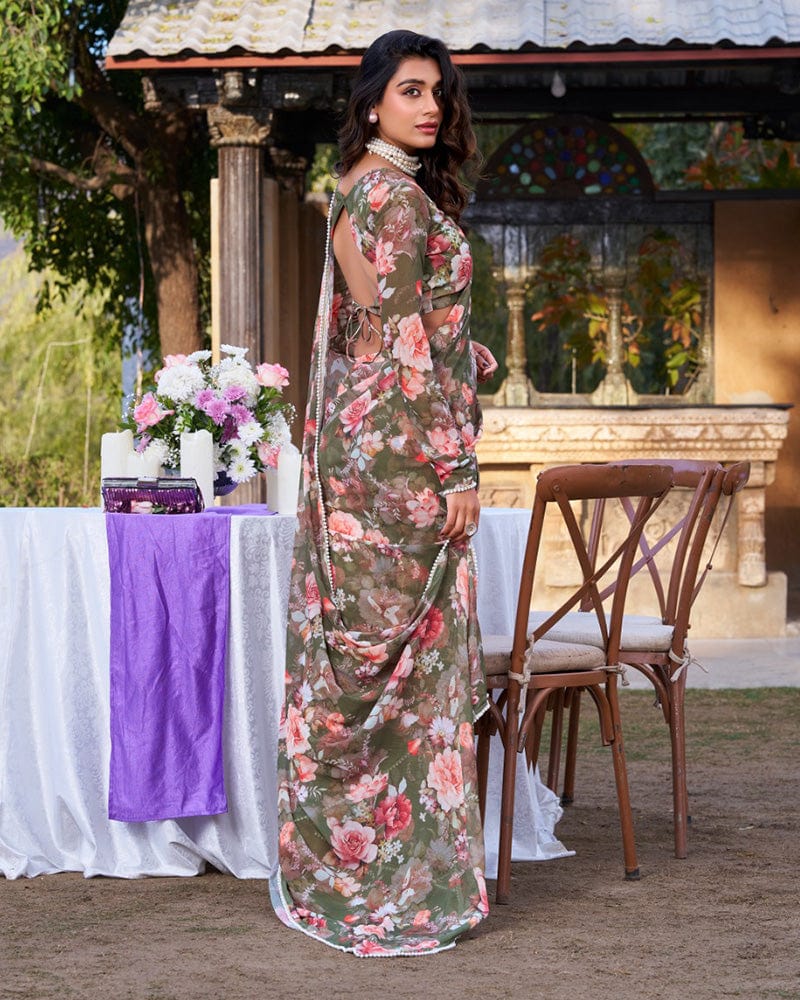 Elegant Mehndi Color Weightless Marble Saree featuring a graceful flow and a soft, lightweight feel. Paired with an unstitched blouse, this saree is perfect for any festive or casual occasion, offering comfort with a touch of sophistication.