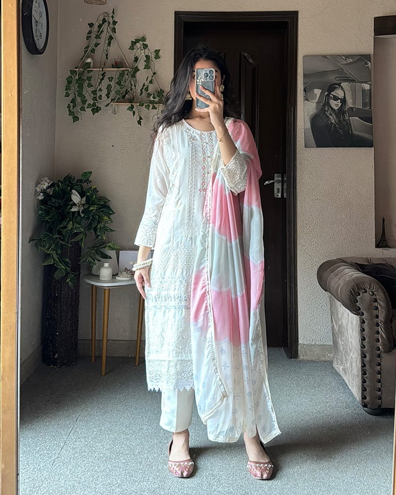 Dupatta Work : 2.3 Meter With Pure Soft Organza With Digital Print & Lace Border